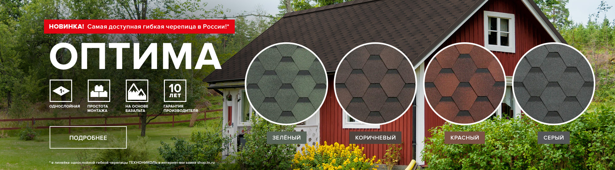 Гибкая черепица ТЕХНОНИКОЛЬ Финская, Аккорд выполнена в трех цветах: Красный, Коричневый и Серый. Гарантийный срок — 20 лет.